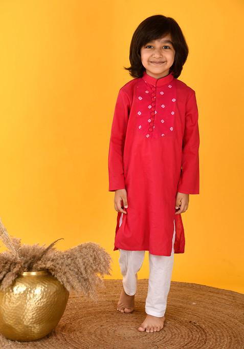 Hot Pink Dye Bandhani Print Kurta With Pajama (Set of 2)