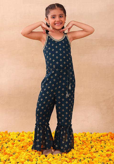 Teal Blue Tiered Jumpsuit With Dori Belt (Set of 2)
