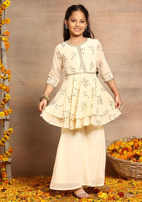 Ivory Abstract Geometric Print Kurta With Palazzo (Set of 2)