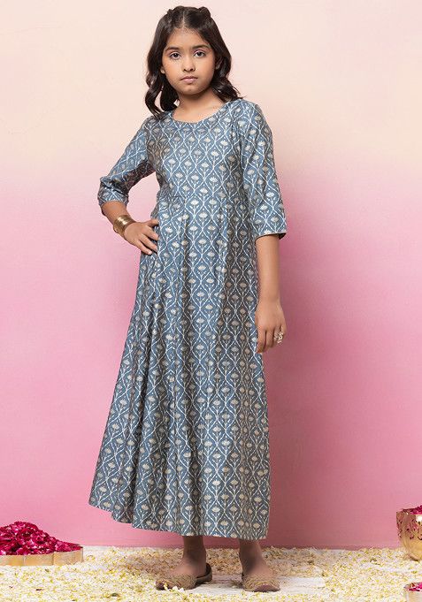 Blue Tiered Maxi Kurta With Embroidered Belt (Set of 2)