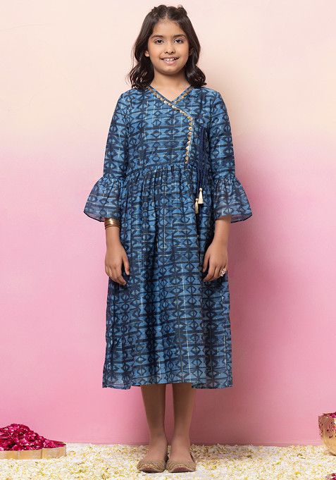 Indigo Blue Bell Sleeve Angrakha Kurta