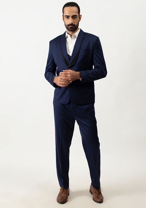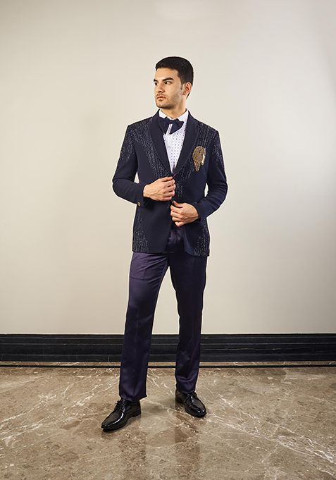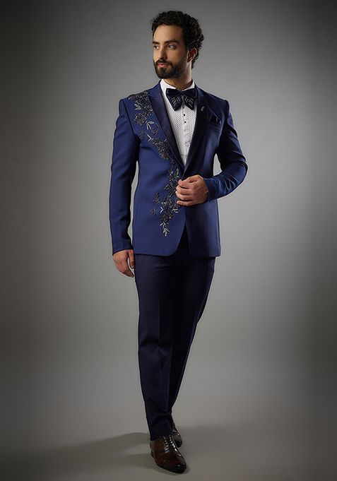 Imperial Blue Hand Embroidered Tuxedo Set For Men