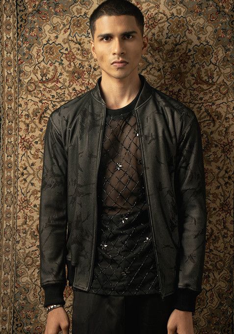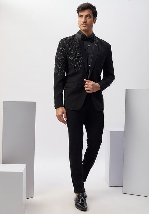 Black Hand Embroidered Ray Blaze Tuxedo Set For Men