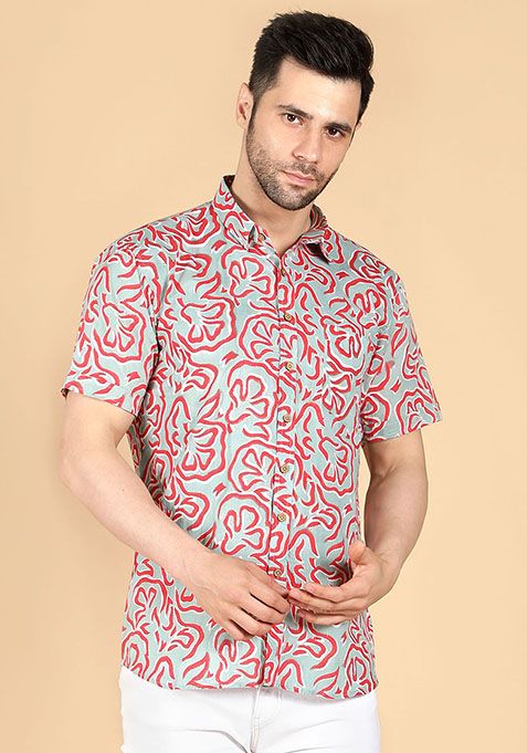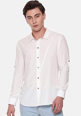 Olive Pintuck Embroidered Giza Cotton Shirt For Men