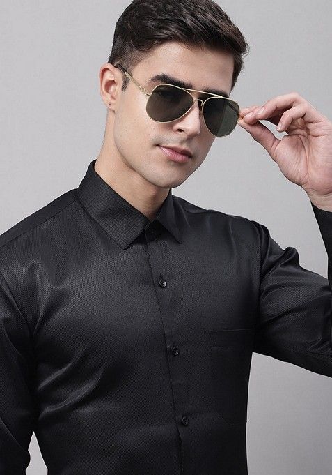 Black Cotton Blend Shirt For Men