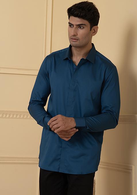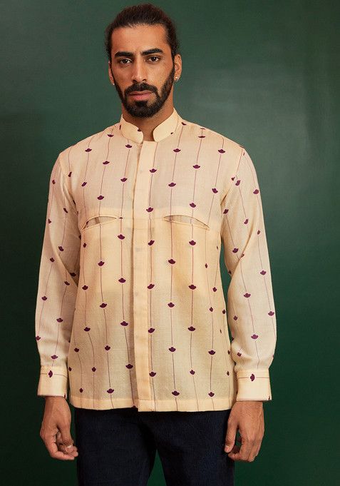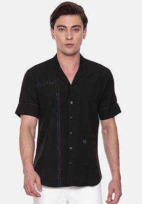 Black Guitar Embroidered Giza Cotton Shirt For Men