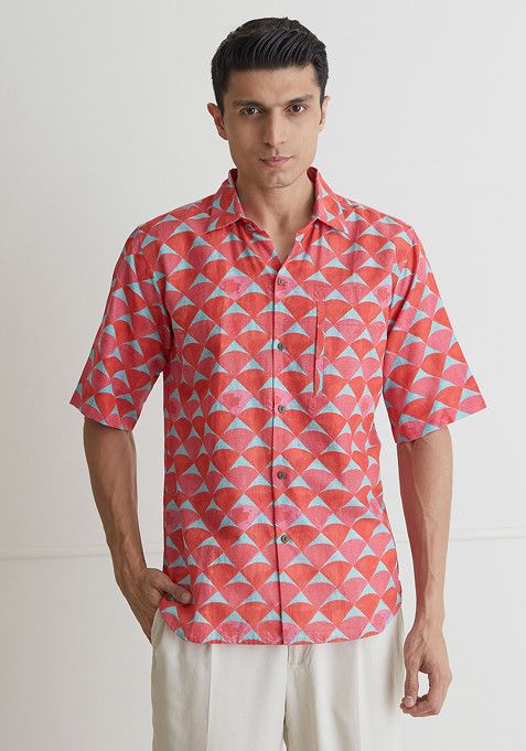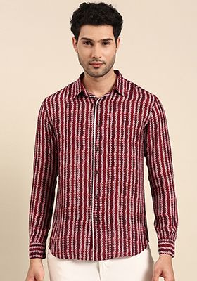 Maroon Printed Muslin Shirt For Men
