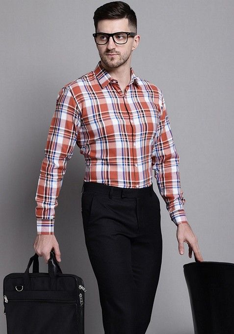 Brown Checkered Cotton Shirt For Men