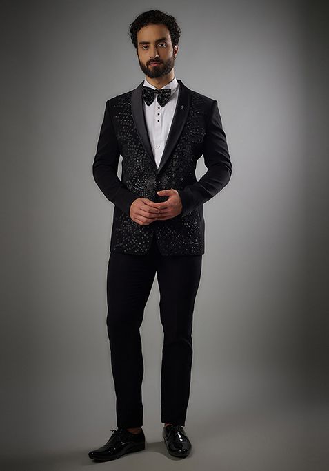 Black Dazzling Embellished Tuxedo Set For Men