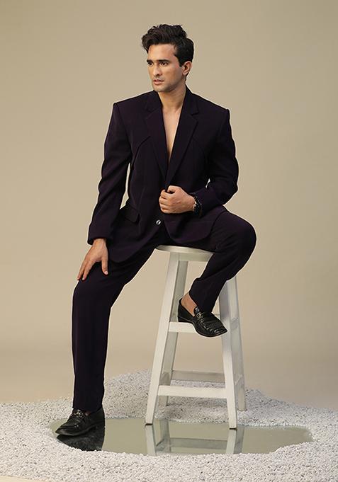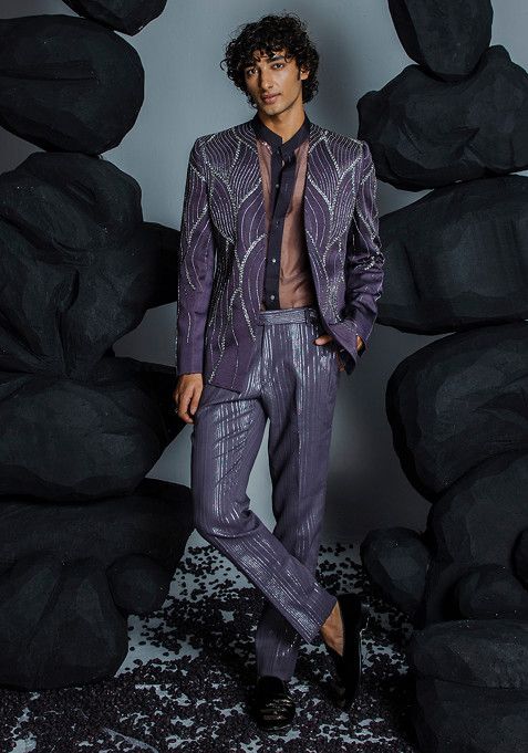 Imperial Blue Hand Embroidered Tuxedo Set For Men