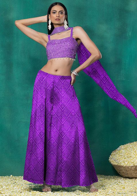 Lavender Sharara Set With Sequin Pearl Hand Embellished Blouse And Choker Dupatta