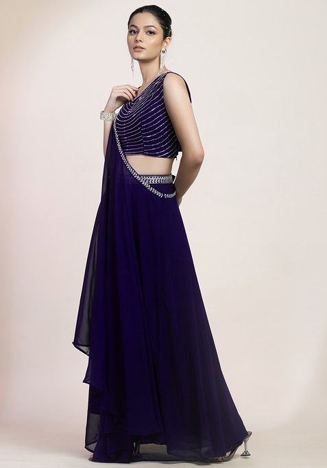 Indigo Blue Lehenga Set With Sequin Hand Work Blouse And Cape