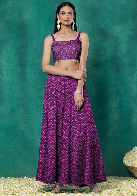 Purple Sharara Set With Sequin Pearl Hand Embellished Blouse And Choker Dupatta