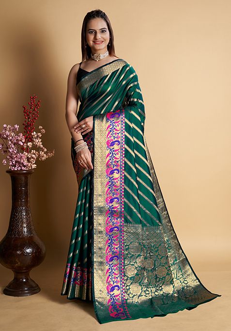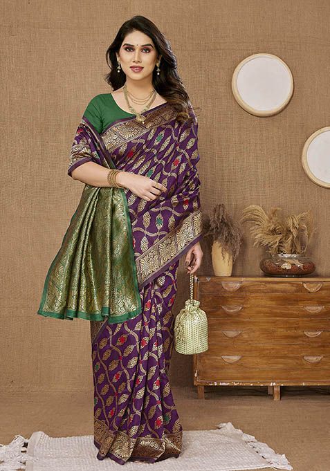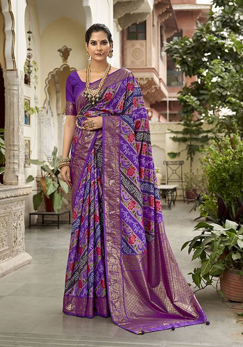 Berry Blue Digital Kalamkari Print Cotton Blend Saree Set