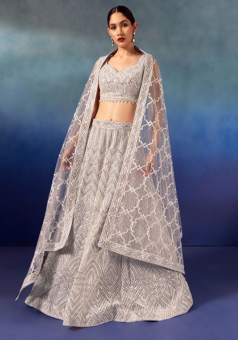 Light Purple Geometric Sequin Embroidered Lehenga Set With Embroidered Blouse And Dupatta