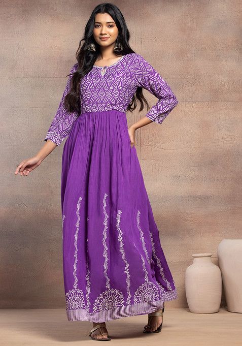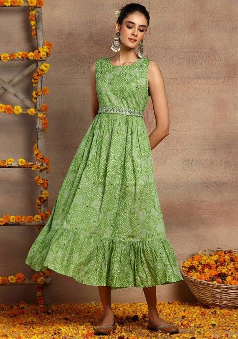 Peach Bandhani Print A-Line Kurta With Pants And Dupatta (Set of 3)