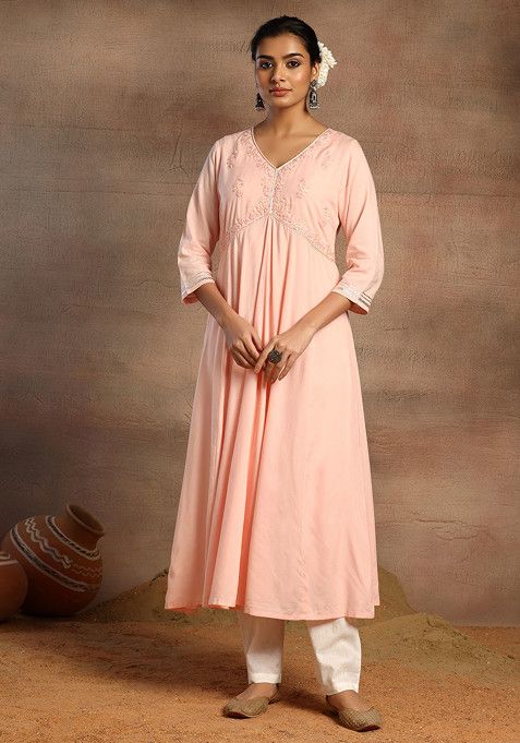 Blush Pink Thread And Gota Embroidered Rayon Kurta