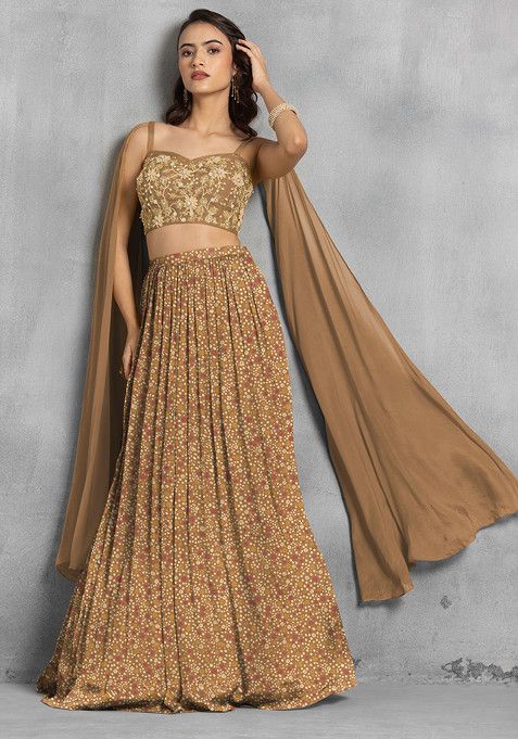 Brown Lehenga Set With Floral Sequin Hand Embroidered Blouse