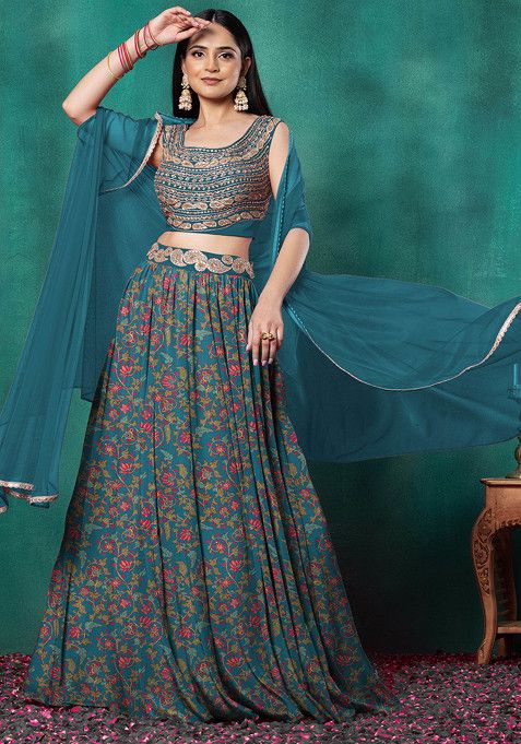 Blue Lehenga Set With Dori Hand Embroidered Blouse And Dupatta