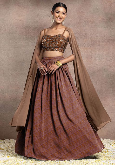 Pink Lehenga Set With Swarovski Hand Embroidered Cape Sleeve Blouse