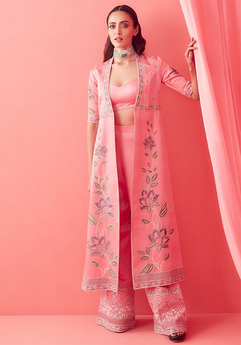 Charcoal Black Hand Embroidered Kurta Set With Pants And Dupatta