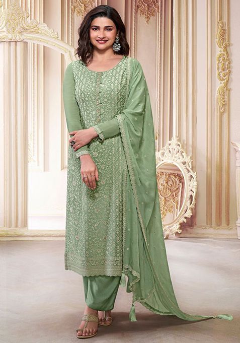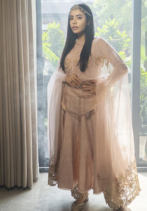Beige Dori Embroidered Chanderi Silk Sharara Set
