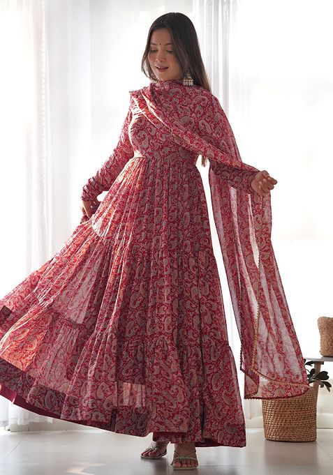 Red Kalamkari Print Faux Georgette Kurta Set