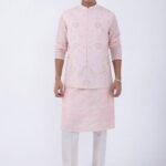 Perfect for weddings, parties, and festive occasions, this piece enhances your cultural charm. Pair this Baby Pink And Ivory Embroidered Bundi Jacket And Kurta Set For Men with matching accessories for a complete, graceful look. Designed to suit all body types, the Baby Pink And Ivory Embroidered Bundi Jacket And Kurta Set For Men blends tradition with modern aesthetics. This Baby Pink And Ivory Embroidered Bundi Jacket And Kurta Set For Men is made from premium fabrics, ensuring comfort while keeping you stylish. Experience timeless elegance with our Baby Pink And Ivory Embroidered Bundi Jacket And Kurta Set For Men, crafted to add a royal touch to your wardrobe.