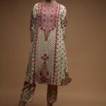 Beige Rhinestones Work Bemberg Crepe Co-ord Set