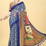 Berry Blue Digital Kalamkari Print Cotton Blend Saree Set