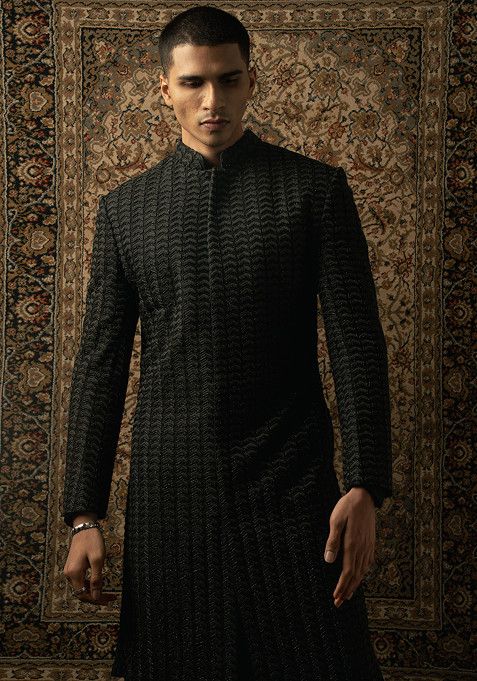 Black Embellished Formal Sherwani Set For Men