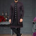 This Black Embroidered Silk Indo Western Jacket And Kurta Set For Men is made from premium fabrics, ensuring comfort while keeping you stylish. Designed to suit all body types, the Black Embroidered Silk Indo Western Jacket And Kurta Set For Men blends tradition with modern aesthetics. Perfect for weddings, parties, and festive occasions, this piece enhances your cultural charm. Pair this Black Embroidered Silk Indo Western Jacket And Kurta Set For Men with matching accessories for a complete, graceful look. Experience timeless elegance with our Black Embroidered Silk Indo Western Jacket And Kurta Set For Men, crafted to add a royal touch to your wardrobe.