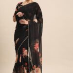 Black Floral Print Georgette Saree With Blouse