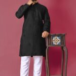 This Black Hand Work Silk Kurta Set For Men is made from premium fabrics, ensuring comfort while keeping you stylish. Designed to suit all body types, the Black Hand Work Silk Kurta Set For Men blends tradition with modern aesthetics. Pair this Black Hand Work Silk Kurta Set For Men with matching accessories for a complete, graceful look. Perfect for weddings, parties, and festive occasions, this piece enhances your cultural charm. Experience timeless elegance with our Black Hand Work Silk Kurta Set For Men, crafted to add a royal touch to your wardrobe.