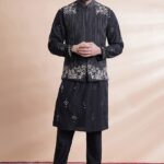 Designed to suit all body types, the Black Machine Embroidered Bundi Jacket For Men blends tradition with modern aesthetics. Perfect for weddings, parties, and festive occasions, this piece enhances your cultural charm. Pair this Black Machine Embroidered Bundi Jacket For Men with matching accessories for a complete, graceful look. Experience timeless elegance with our Black Machine Embroidered Bundi Jacket For Men, crafted to add a royal touch to your wardrobe. This Black Machine Embroidered Bundi Jacket For Men is made from premium fabrics, ensuring comfort while keeping you stylish.