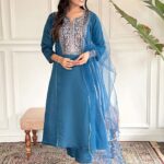 Pair this Blue Embroidered Chanderi Viscose Kurta Set with matching accessories for a complete, graceful look. Experience timeless elegance with our Blue Embroidered Chanderi Viscose Kurta Set, crafted to add a royal touch to your wardrobe. Perfect for weddings, parties, and festive occasions, this piece enhances your cultural charm. Designed to suit all body types, the Blue Embroidered Chanderi Viscose Kurta Set blends tradition with modern aesthetics. This Blue Embroidered Chanderi Viscose Kurta Set is made from premium fabrics, ensuring comfort while keeping you stylish.