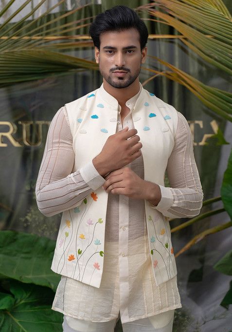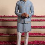 This Blue Zardozi Work Bundi Jacket For Men is made from premium fabrics, ensuring comfort while keeping you stylish. Pair this Blue Zardozi Work Bundi Jacket For Men with matching accessories for a complete, graceful look. Experience timeless elegance with our Blue Zardozi Work Bundi Jacket For Men, crafted to add a royal touch to your wardrobe. Designed to suit all body types, the Blue Zardozi Work Bundi Jacket For Men blends tradition with modern aesthetics. Perfect for weddings, parties, and festive occasions, this piece enhances your cultural charm.