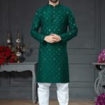 Pair this Bottle Green Embroidered Cotton Kurta Set For Men with matching accessories for a complete, graceful look. Perfect for weddings, parties, and festive occasions, this piece enhances your cultural charm. This Bottle Green Embroidered Cotton Kurta Set For Men is made from premium fabrics, ensuring comfort while keeping you stylish. Designed to suit all body types, the Bottle Green Embroidered Cotton Kurta Set For Men blends tradition with modern aesthetics. Experience timeless elegance with our Bottle Green Embroidered Cotton Kurta Set For Men, crafted to add a royal touch to your wardrobe.