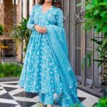 Bright Blue Printed Pure Muslin Kurta Set