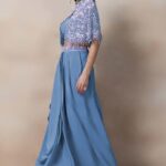 Cool Blue Bead Thread Embellished Drapped Skirt Set