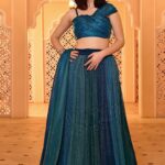 Dark Aqua Blue Embellished Net Lehenga Set