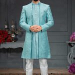 Pair this Dusty Aqua Blue Embroidered Indo Western Jacket And Kurta Set For Men with matching accessories for a complete, graceful look. Designed to suit all body types, the Dusty Aqua Blue Embroidered Indo Western Jacket And Kurta Set For Men blends tradition with modern aesthetics. Perfect for weddings, parties, and festive occasions, this piece enhances your cultural charm. This Dusty Aqua Blue Embroidered Indo Western Jacket And Kurta Set For Men is made from premium fabrics, ensuring comfort while keeping you stylish. Experience timeless elegance with our Dusty Aqua Blue Embroidered Indo Western Jacket And Kurta Set For Men, crafted to add a royal touch to your wardrobe.