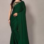 This Green Solid Satin Saree Set is made from premium fabrics, ensuring comfort while keeping you stylish. Perfect for weddings, parties, and festive occasions, this piece enhances your cultural charm. Experience timeless elegance with our Green Solid Satin Saree Set, crafted to add a royal touch to your wardrobe. Pair this Green Solid Satin Saree Set with matching accessories for a complete, graceful look. Designed to suit all body types, the Green Solid Satin Saree Set blends tradition with modern aesthetics.