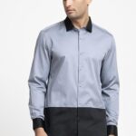 Grey Patch Work Giza Cotton Blend Shirt For Men
