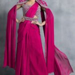 Hot Pink Pre-Stitched Saree And Hand Embroidered Blouse Set With Belt And Cape