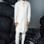 Pair this Ivory Embroidered Sherwani Set For Men with matching accessories for a complete, graceful look. This Ivory Embroidered Sherwani Set For Men is made from premium fabrics, ensuring comfort while keeping you stylish. Designed to suit all body types, the Ivory Embroidered Sherwani Set For Men blends tradition with modern aesthetics. Experience timeless elegance with our Ivory Embroidered Sherwani Set For Men, crafted to add a royal touch to your wardrobe. Perfect for weddings, parties, and festive occasions, this piece enhances your cultural charm.