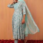 Ivory Floral Jaal Print Anarkali Kurta With Pants And Dupatta (Set of 3)