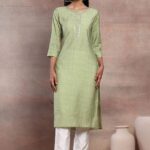 This Light Green Bandhani Print Embroidered Neck Straight Kurta is made from premium fabrics, ensuring comfort while keeping you stylish. Experience timeless elegance with our Light Green Bandhani Print Embroidered Neck Straight Kurta, crafted to add a royal touch to your wardrobe. Perfect for weddings, parties, and festive occasions, this piece enhances your cultural charm. Designed to suit all body types, the Light Green Bandhani Print Embroidered Neck Straight Kurta blends tradition with modern aesthetics. Pair this Light Green Bandhani Print Embroidered Neck Straight Kurta with matching accessories for a complete, graceful look.