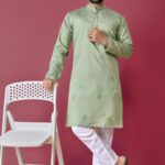 Perfect for weddings, parties, and festive occasions, this piece enhances your cultural charm. This Light Green Hand Work Silk Kurta Set For Men is made from premium fabrics, ensuring comfort while keeping you stylish. Experience timeless elegance with our Light Green Hand Work Silk Kurta Set For Men, crafted to add a royal touch to your wardrobe. Designed to suit all body types, the Light Green Hand Work Silk Kurta Set For Men blends tradition with modern aesthetics. Pair this Light Green Hand Work Silk Kurta Set For Men with matching accessories for a complete, graceful look.
