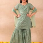 Light Green Sharara With Kurta And Dupatta (Set of 3)